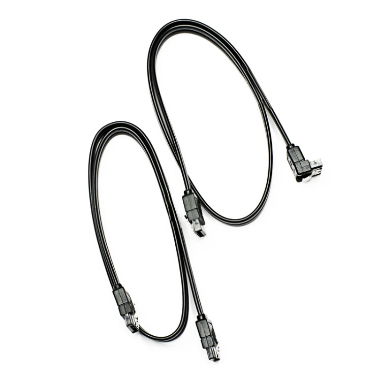 مشخصات فنی : بسته بندی شامل دو کابل میباشد : یک کابل با دو سری صاف و دیگری با یک سری صاف و یک سری ۹۰ درجه دارای ضامن قفل شونده به پورت SATA پهنای باند شش گیگابیت بر ثانیهی مناسب برای SSD